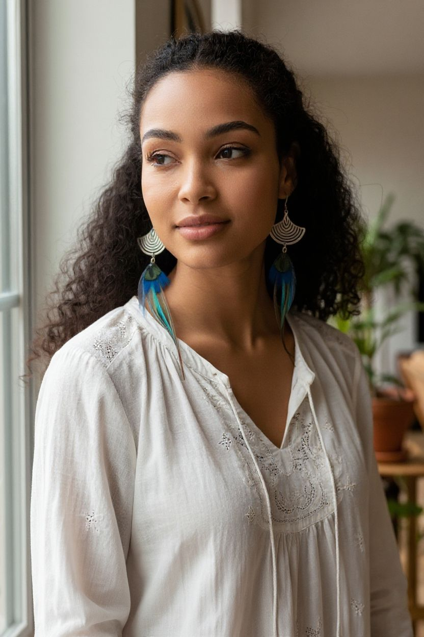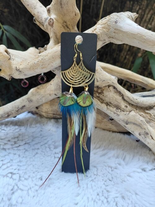 Elégance et raffinement de plumes de Paon et de Coq sur un montage en acier inoxydable.